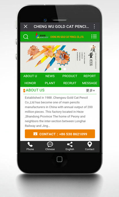 本廠主要生產“金鎧蒂”牌各種木桿鉛筆,有黑芯鉛筆(色桿、印花、抽條、沾頭、收縮膜、大皮頭、熱轉印、鐳射膜等);6-60色彩芯系列鉛筆;紅/藍鉛筆;多色彩虹芯高級鉛筆;曹縣網站建設繪圖鉛筆及禮品包裝組合鉛筆及塑料尺子套裝、橡皮擦系列等。產品質量通過歐盟EN71-3檢測標準。